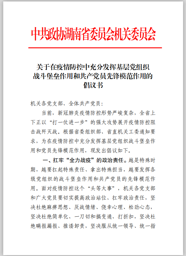 中共365数字含义_365beat版app_365体育投注网站湖南省委员会机关委员会《关于在疫情防控中充分发挥基层党组织战斗堡垒作用和共产党员先锋模范作用的倡议书》