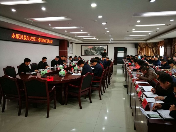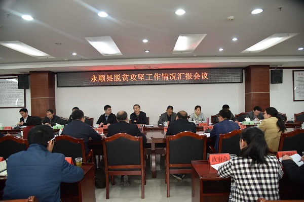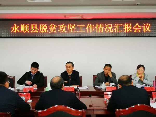 会议听取了永顺县县长陈海波的脱贫攻坚工作报告汇报,省扶贫办副巡视员杨文辉传达学习习近平总书记在成都座谈会的重要讲话精神。